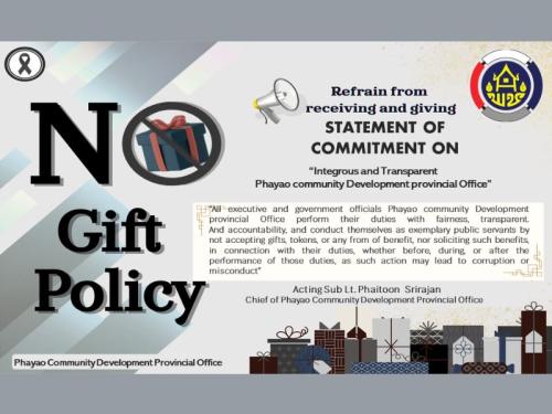 สำนักงานพัฒนาชุมชนจังหวัดพะเยา ร่วมประกาศเจตนารมณ์ งดรับ งดให้ "สุจริต โปร่งใส มหาดไทย ใสสะอาด 2569" No gift Policy
