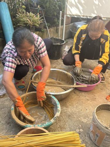 ดำเนินโครงการพัฒนาผลิตภัณฑ์สิ่งทอและจากจักสานด้วยเทคนิคการย้อมสีธรรมชาติ และการหมักโคลนเพื่มมูลค่าจากลายพื้นถิ่นอัตลักษณ์ชุมชนสู่ ลายพระราชทานที่ทรงคุณค่าและแฟชั่นผลิตภัณฑ์ประเภทสิ่งทอและจากสาน